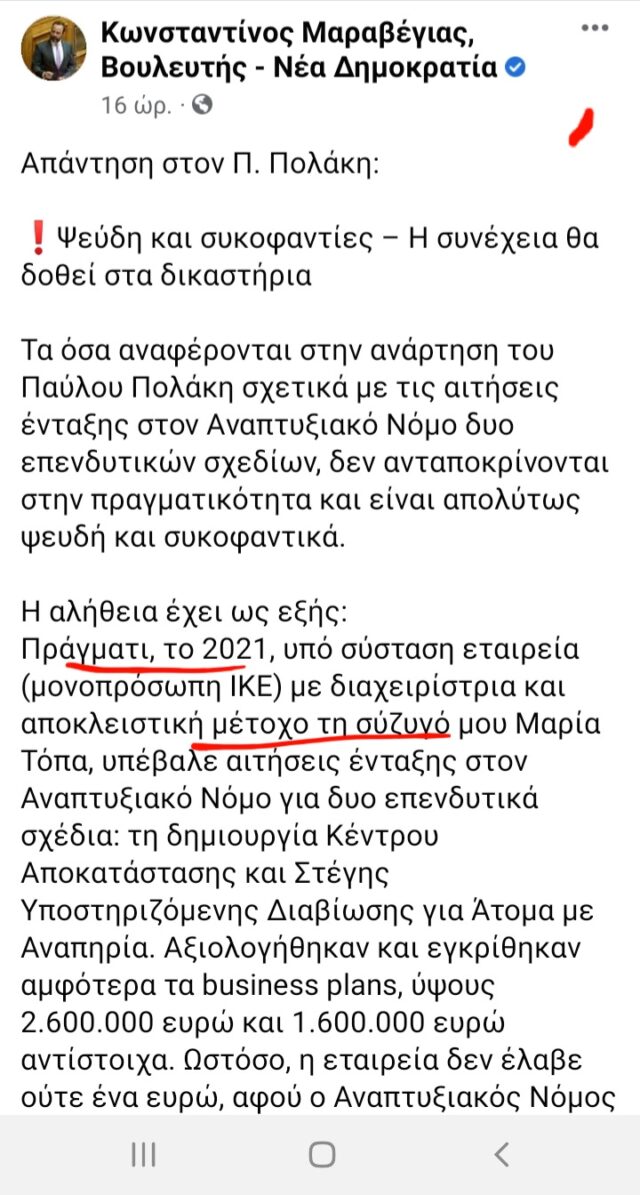 Αμέσως αφότου εγκρίθηκε οριστικά η επένδυση (10.1.2022), σύστησε στο όνομα της γυναίκας του (Μαρία Τόπα, ασφαλίστρια!!) μονοπρόσωπη ΙΚΕ με κεφάλαιο 5.000 ευρώ.