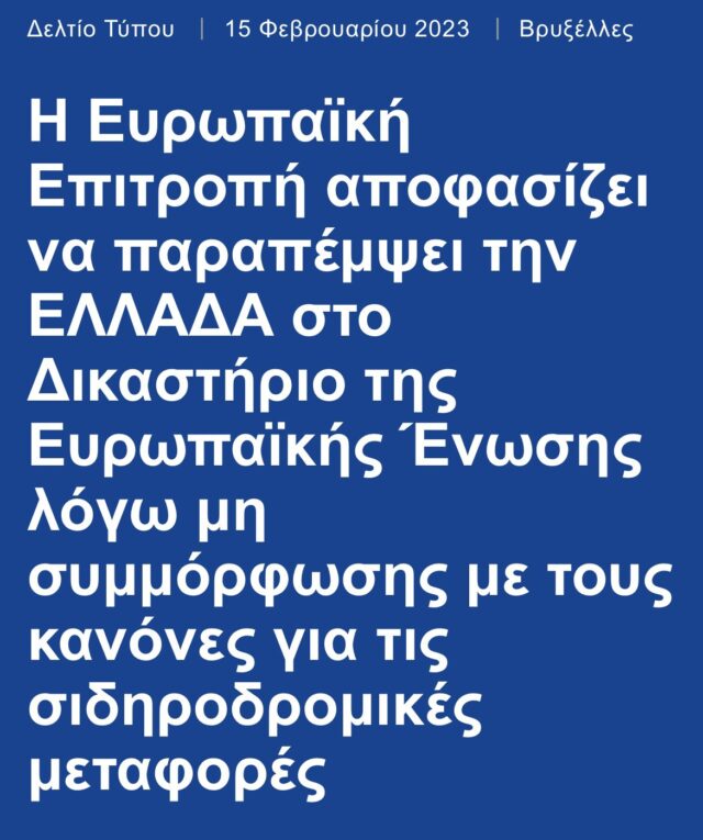 Η ΕΕ «έσυρε» τη χώρα μας στο Ευρωπαϊκό Δικαστήριο, πριν μία εβδομάδα, για μη τήρηση των κανόνων ασφαλείας στους σιδηροδρόμους! «Είναι εξωφρενικό να μη λειτουργεί η τηλεματική για την οποία η ΕΕ έχει δώσει εκατομμύρια και κανείς να μην το ελέγχει αυτό» αναφέρουν ευρωπαϊκές πηγές.