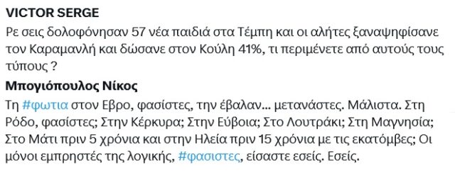 Την αποκλειστική ευθύνη για την ρατσιστική έξαρση έχει η άθλια κυβέρνηση Μητσοτάκη που για να δικαιολογήσει την ανικανότητά της, την χρόνια επιλογή της να μην υπάρχουν επαρκή μέσα και προσωπικό πυρόσβεσης (…άλλωστε μόνο αστυνομικοί και παπάδες χρειάζονται στην μπανανία), επικαλείται κάθε είδους ψευδοεπιστημονική αρλούμπα, όπως «οπισθοδρομούσα πυρκαγιά» «φαινόμενο πλυντηρίου» «πυρκαγιές σεσουάρ»!