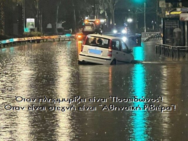 Οι εικόνες της πλημμυρισμένης λεωφόρου Ποσειδώνος μετά από την έντονη προχθεσινή βροχόπτωση έπαιξαν παντού, ωστόσο η περιγραφή του Χρήστου Κούτρα στον Σκάι, μάλλον ήταν η καλύτερη αποτύπωση της πραγματικότητας που βιώνουν οι κάτοικοι των νοτίων προαστίων της Αττικής…