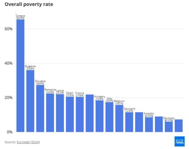 Άλλο ένα κατόρθωμα του καθεστώτος Μητσοτάκη, όπως αναφέρεται στο ρεπορτάζ του Euronews, που απλά πιστοποιεί αυτό που βιώνει η πλειοψηφία των κατοίκων αυτής της χώρας!