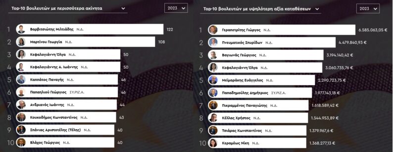 239 ακίνητα έχουν δηλωμένα, σύμφωνα με το πόθεν έσχες το 2023, μόνο 12 από τα δεκάδες μέλη της κυβέρνησης Μητσοτάκη! Και το ακόμα μεγαλύτερο ενδιαφέρον προκαλεί το γεγονός ότι ο συνολικός αριθμός ακινήτων των βουλευτών της ΝΔ αυξήθηκε κατά 460 ακίνητα από το 2019 έως το 2023! Έχει βέβαια ενδιαφέρον να δούμε πόσο και κυρίως […]