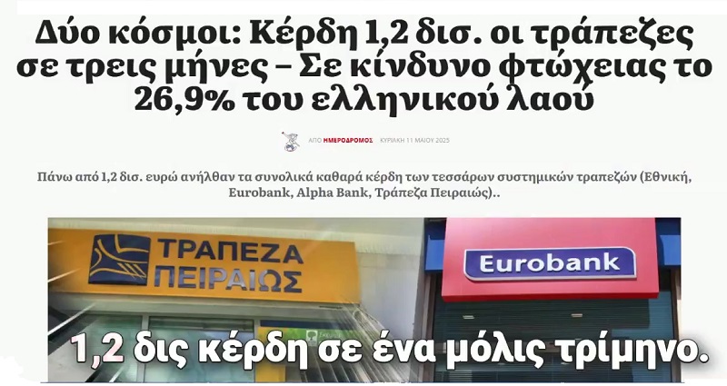 Οι Τράπεζες ανακοίνωσαν κέρδη 1,2 δις σε ένα τρίμηνο, αλλά αντί να πληρώσουν τα 13 δις που χρωστάνε σε φόρους, θα τα παντελονιάσουν… Δείτε το βίντεο